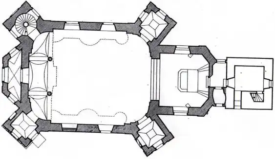 V obyčtovském kostele jsou celkem 3 boční kaple, umístěné v “nohách” podoby želvy.